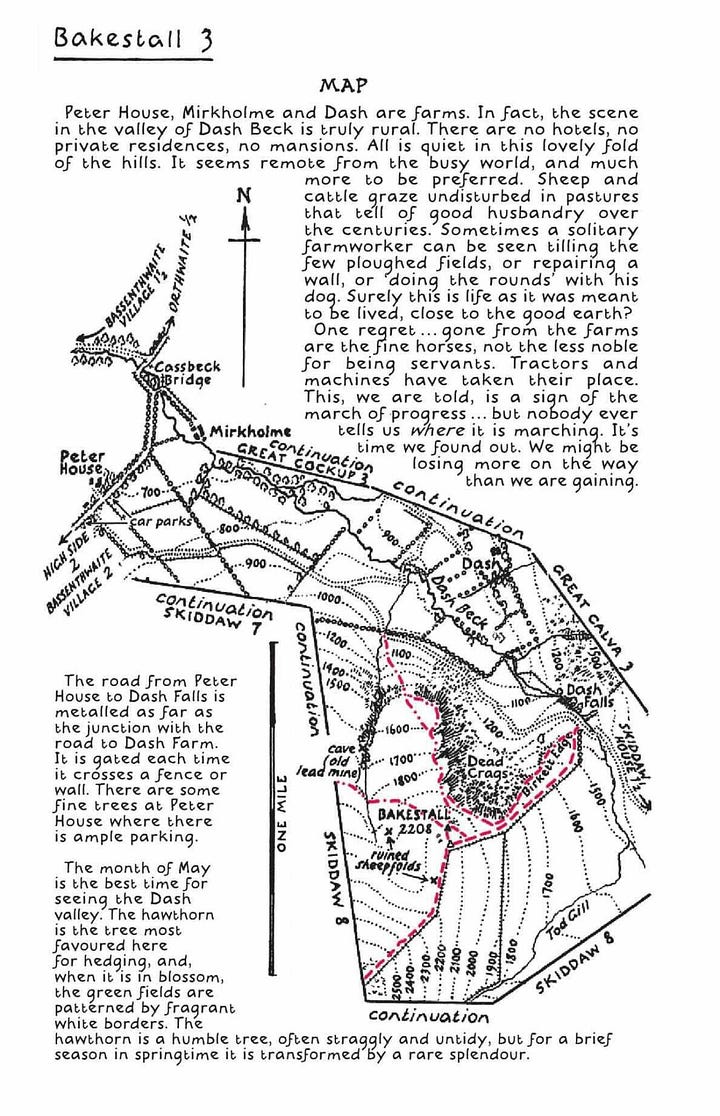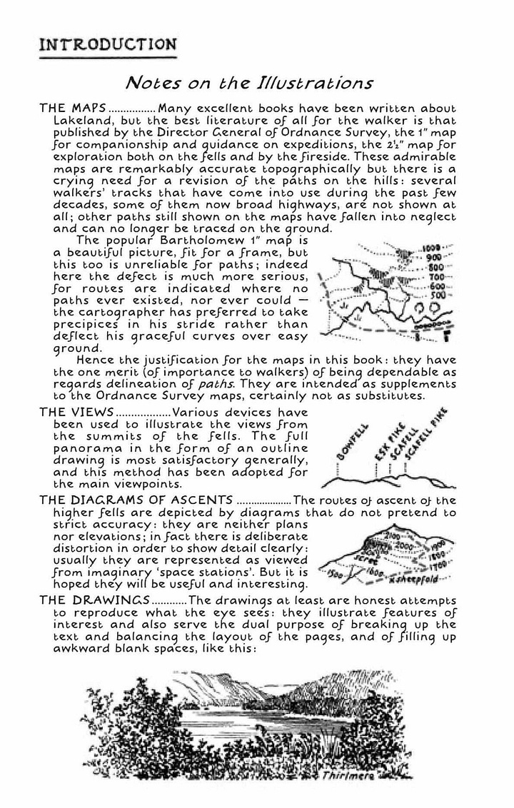 Each trail map is draw in three perspectives that seamlessly flow from an overhead arial perspective at the start, to a forty-five degree view during the ascent, and finally a face-on horizontal guide to the summit. I have never seen this done anywhere before or since. I hope to spend several seasons hiking the “Wainwrights” as they are called.